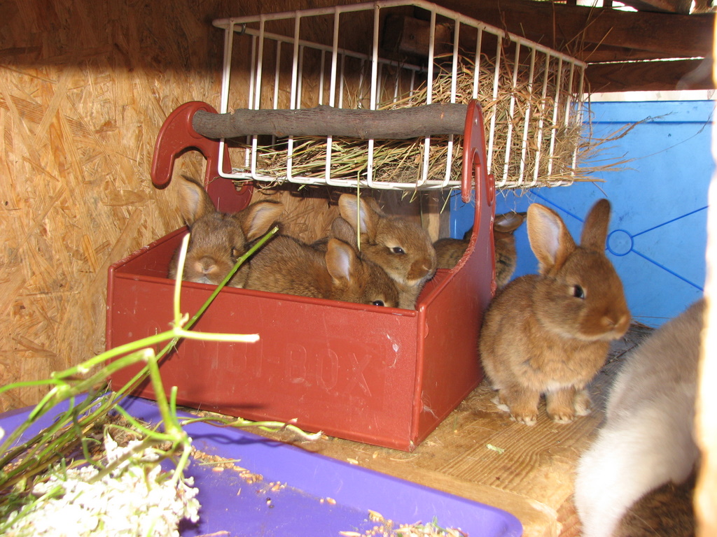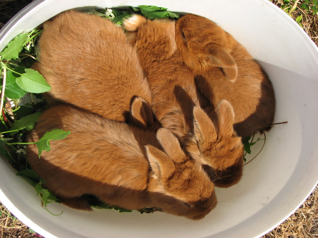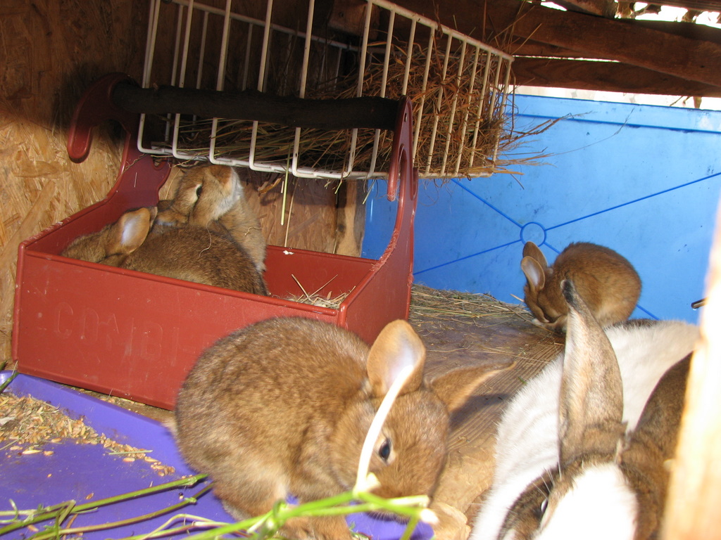 Ma nyulat vágtunk… Az egyik vörös kiszökött a helyéről, és meglátogatta a többieket. Nem tudom, miért pont oda ment, ott van a legkevesebb fű. Szerencsétlenségére Lili és Lali épp a mézesheteiket töltötték ott. Gondolom, Lali nem örült a konkurenciának, Lili meg egyáltalán senkinek sem, aki tőle akar valamit. Jól megtépték szegényt… Aztán jöttek a tyúkok. Rettentő vérszomjas fenevadak, azonnal odagyűlnek a vérszagra.